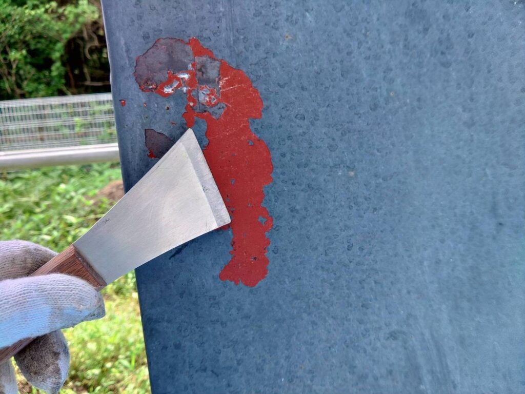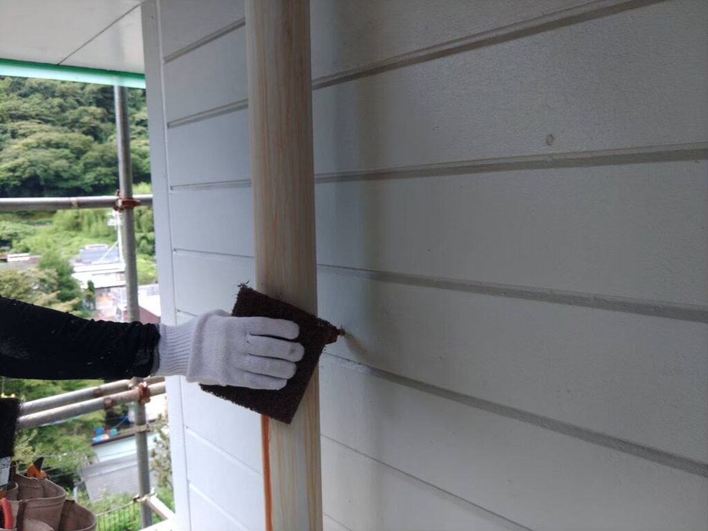 塗装工事の前に鉄部や木部の表面にあるサビ、旧塗膜、汚れをヤスリや電動工具で削り落とし、下地をきれいに整える工程です!!