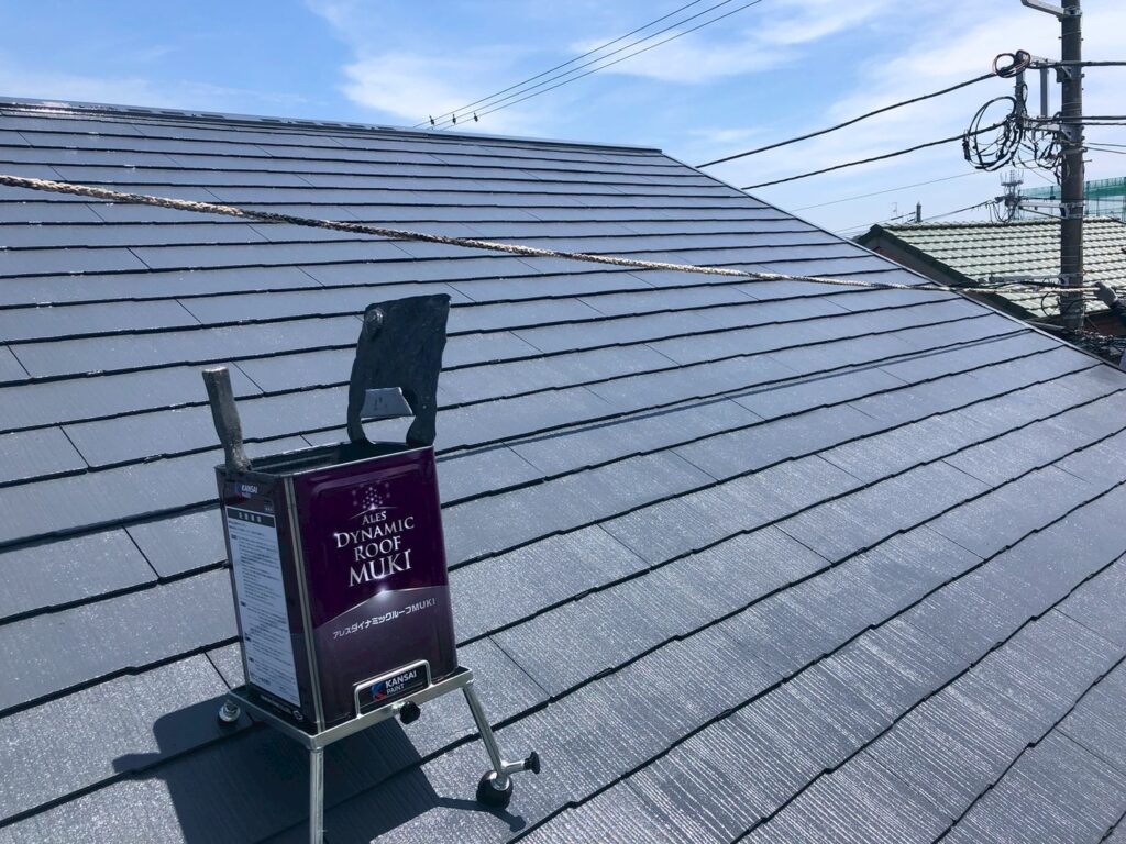使っている塗料は中塗りと同じで関西ペイントさんのラジカル制御塗料、アレスダイナミックルーフMUKIです!