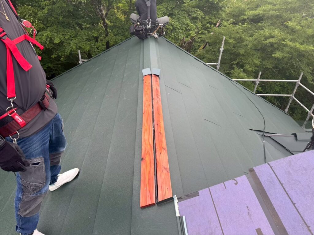 屋根の頂上は雨水が侵入しやすい部分ですが、棟板金が屋根材の隙間を覆うことで雨水の浸入を防ぎます!