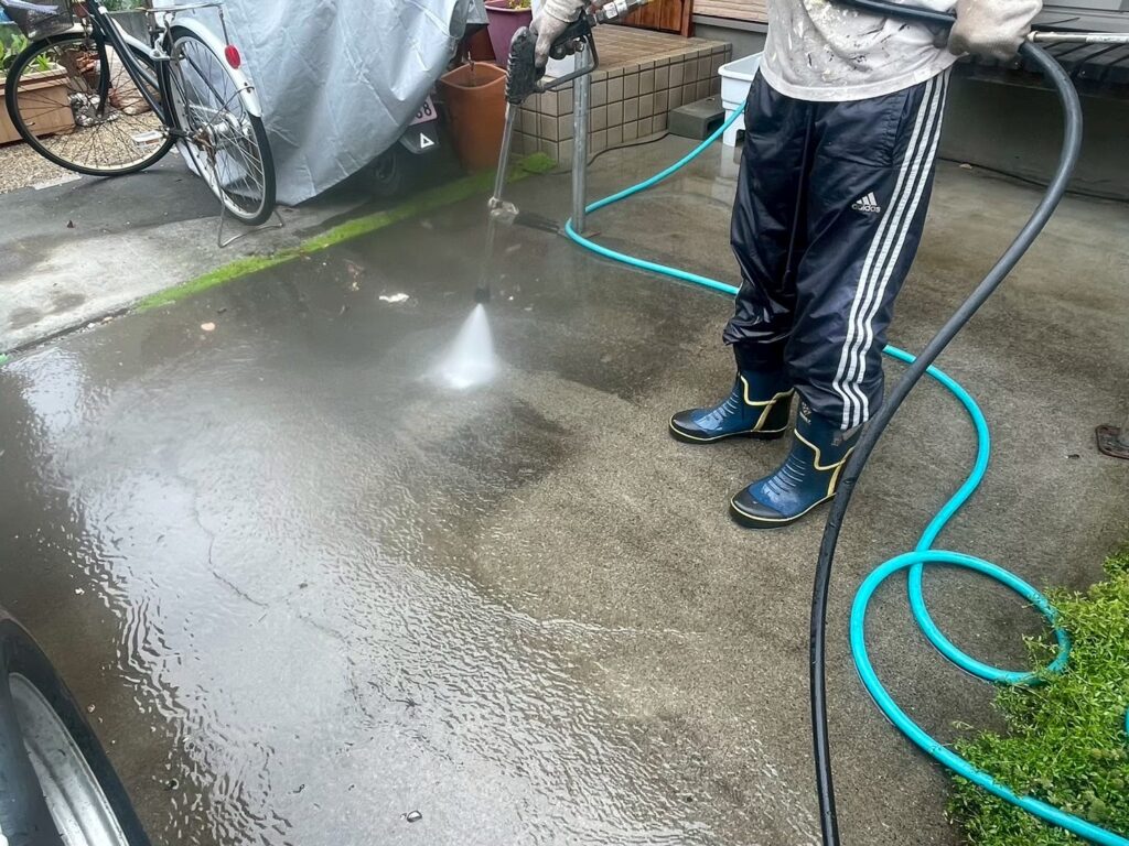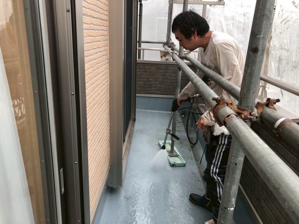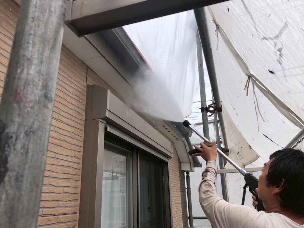 この工程を怠ると新しい塗料が密着せず、剥がれや膨れといったトラブルの原因となるため、丁寧な高圧洗浄が不可欠です!!