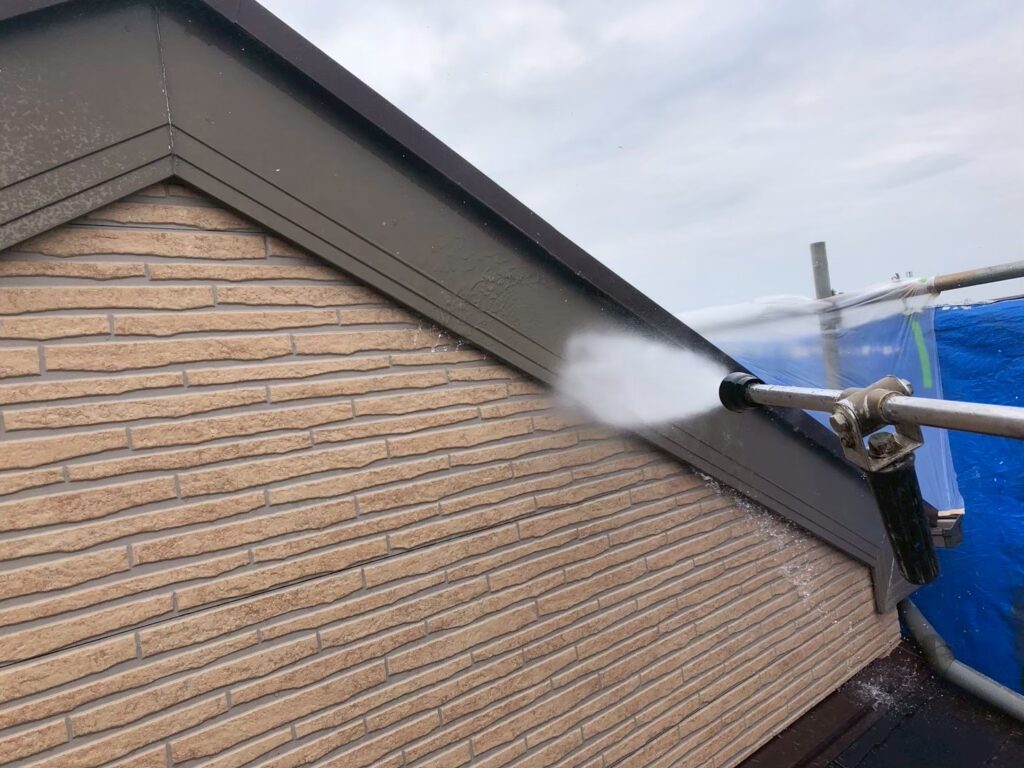 塗装前の高圧洗浄は外壁や屋根に付着した汚れ、コケ、カビ、チョーキング(粉化した塗膜)などを高圧の水で洗い流す、塗装の品質と耐久性を高めるための非常に重要な下準備作業です!